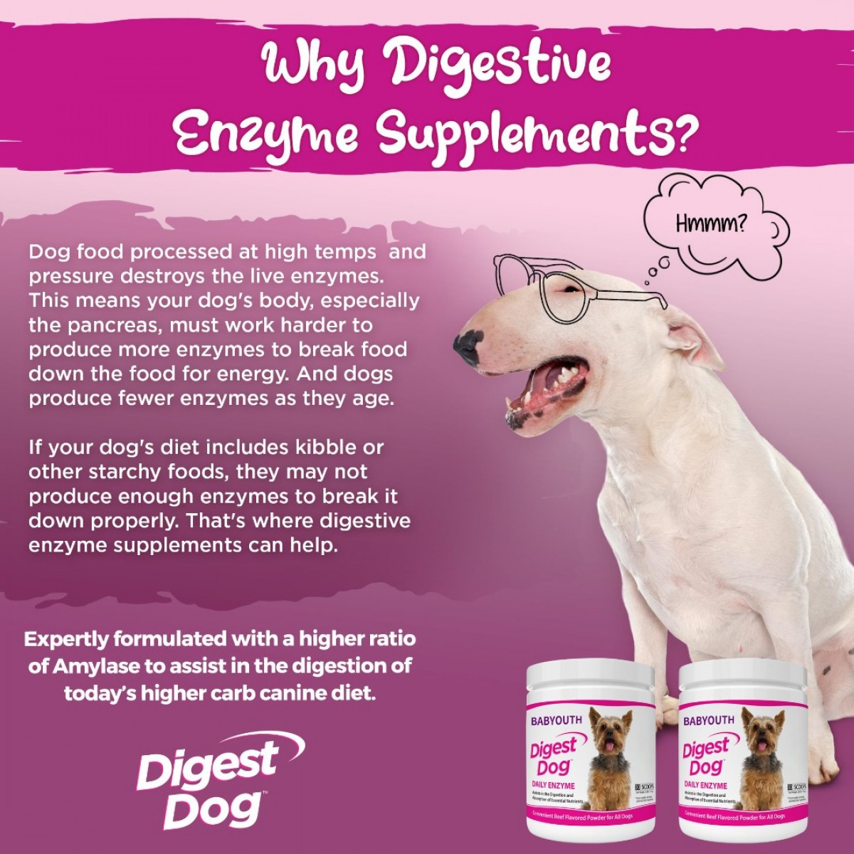 - Reduces Digestive Strain: By supplementing with digestive enzymes, you can reduce the workload on your dog's pancreas, which may be especially beneficial for dogs with pancreatic insufficiency or other digestive issues. This can help prevent digestive strain and promote a healthier gastrointestinal system.