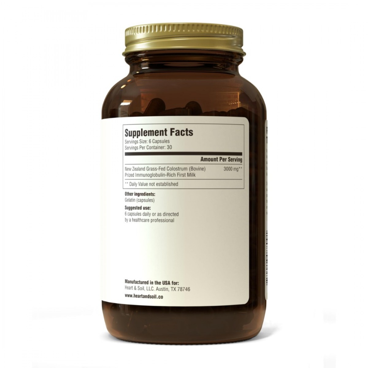 Drpark Dietary supplements HEART & SOIL Grass-Fed Colostrum – Dietary Supplement for Skin Health & Exercise Recovery-Non-GMO, Allergen-Free Colostrum Supplement for Immune Support, Gut Health, & More - 180 Capsules