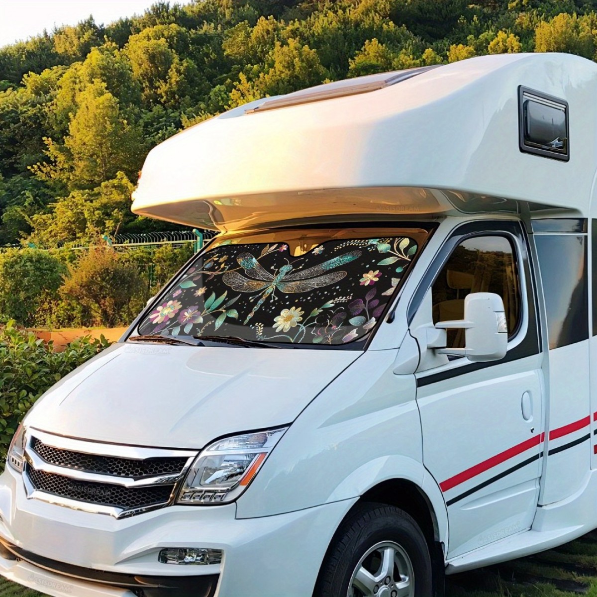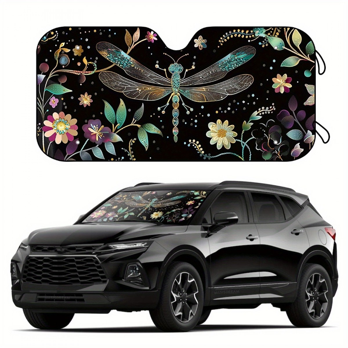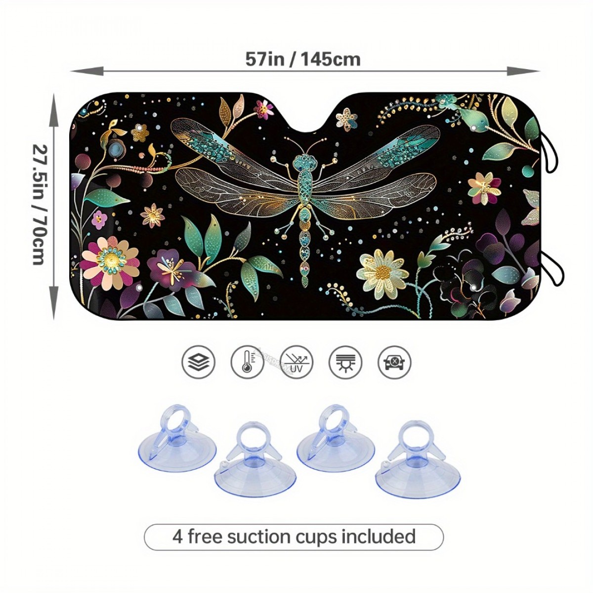 Elegant Print: The dragonfly and flowers print adds an aesthetic appeal to the functionality of the sunshade. It transforms a typically utilitarian item into a decorative piece that reflects personal style.