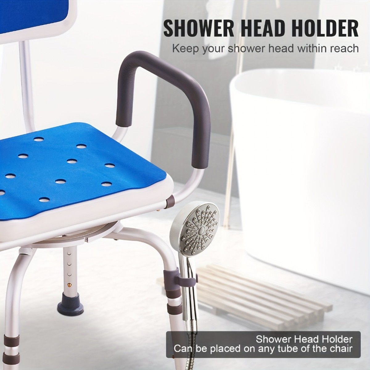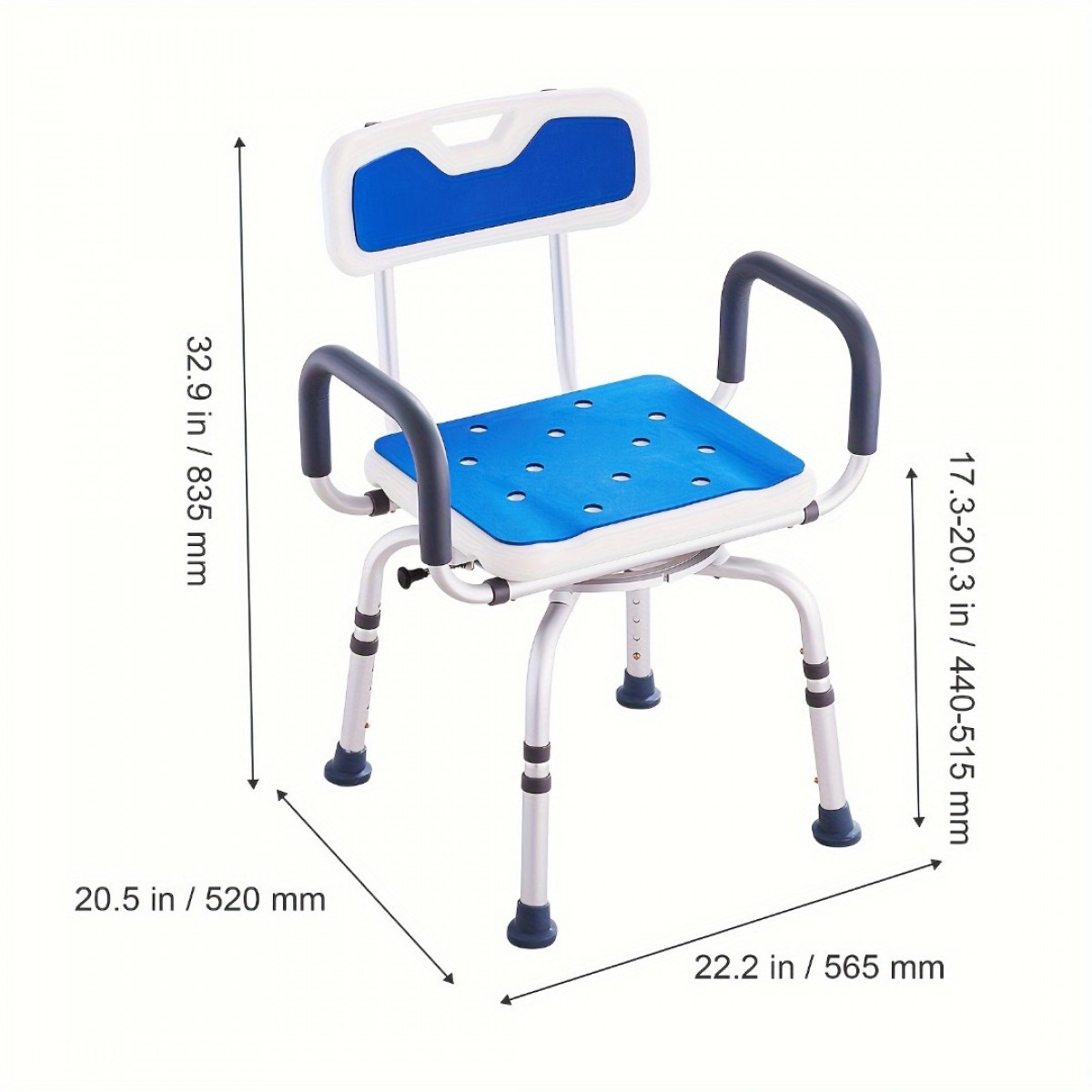 - Enhanced Support: Equipped with armrests, this shower chair provides extra support when sitting down or standing up. The armrests offer a secure grip and help increase stability during transfers in and out of the shower.