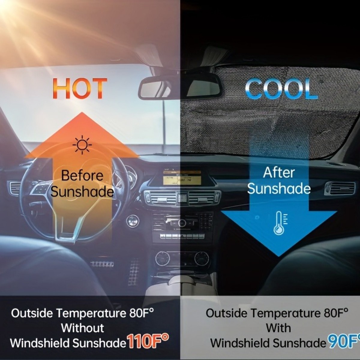 • Reduces Interior Temperature: By reflecting sunlight, the sunshade helps reduce the interior temperature of your car, making it more comfortable when you return on hot days. This can also lessen the reliance on air conditioning, potentially saving fuel.