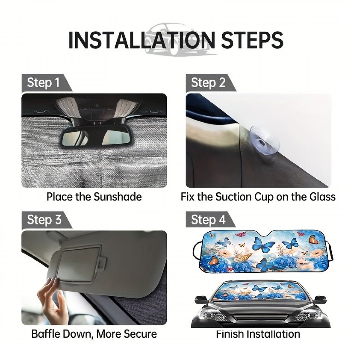 • Butterfly Print Design: With an attractive butterfly pattern, this sunshade adds a splash of beauty and personality to your car. It’s a great way to personalize your vehicle while also serving a functional purpose.