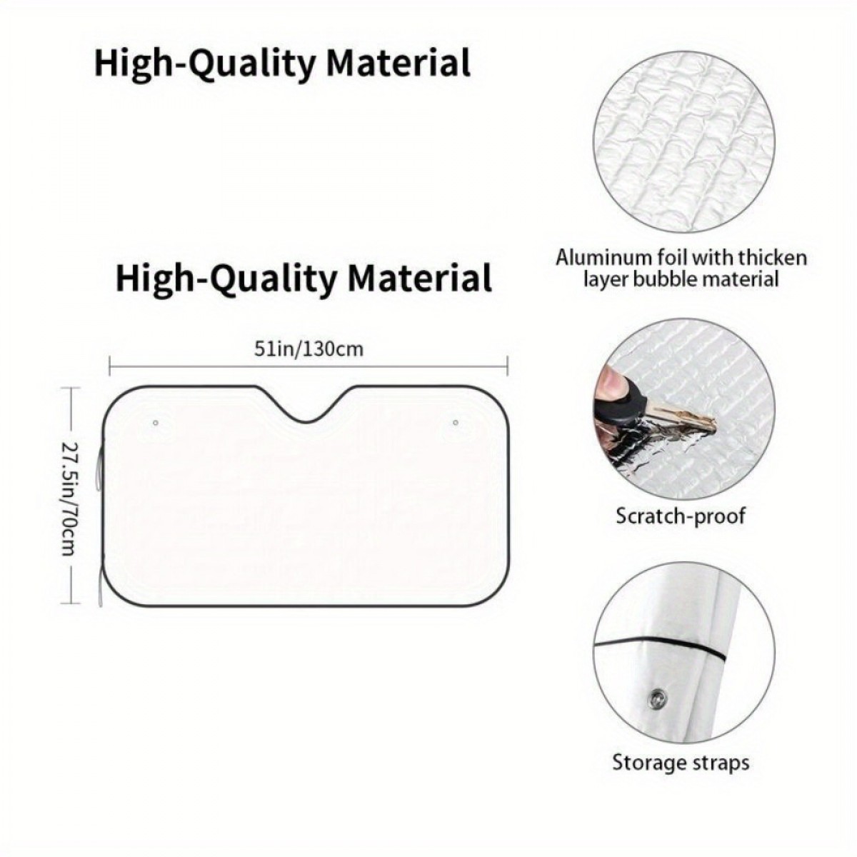 • UV Protection: This windshield sunshade is engineered to block harmful UV rays, preventing them from penetrating your car's interior. This helps in protecting your dashboard, seats, and other components from fading, cracking, or deteriorating due to prolonged sun exposure.