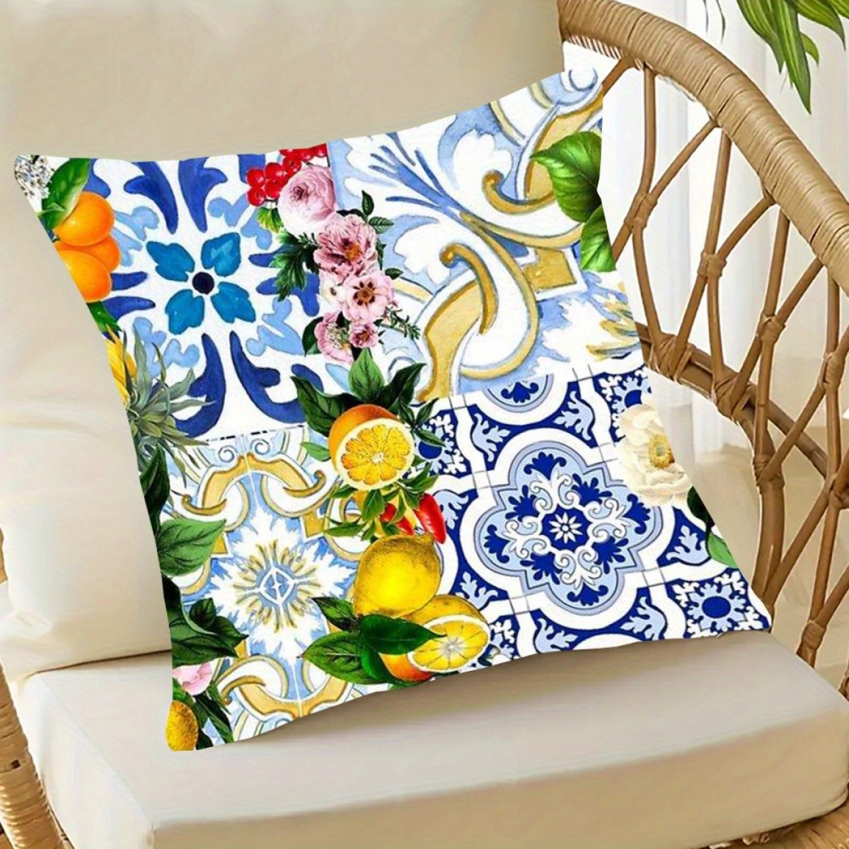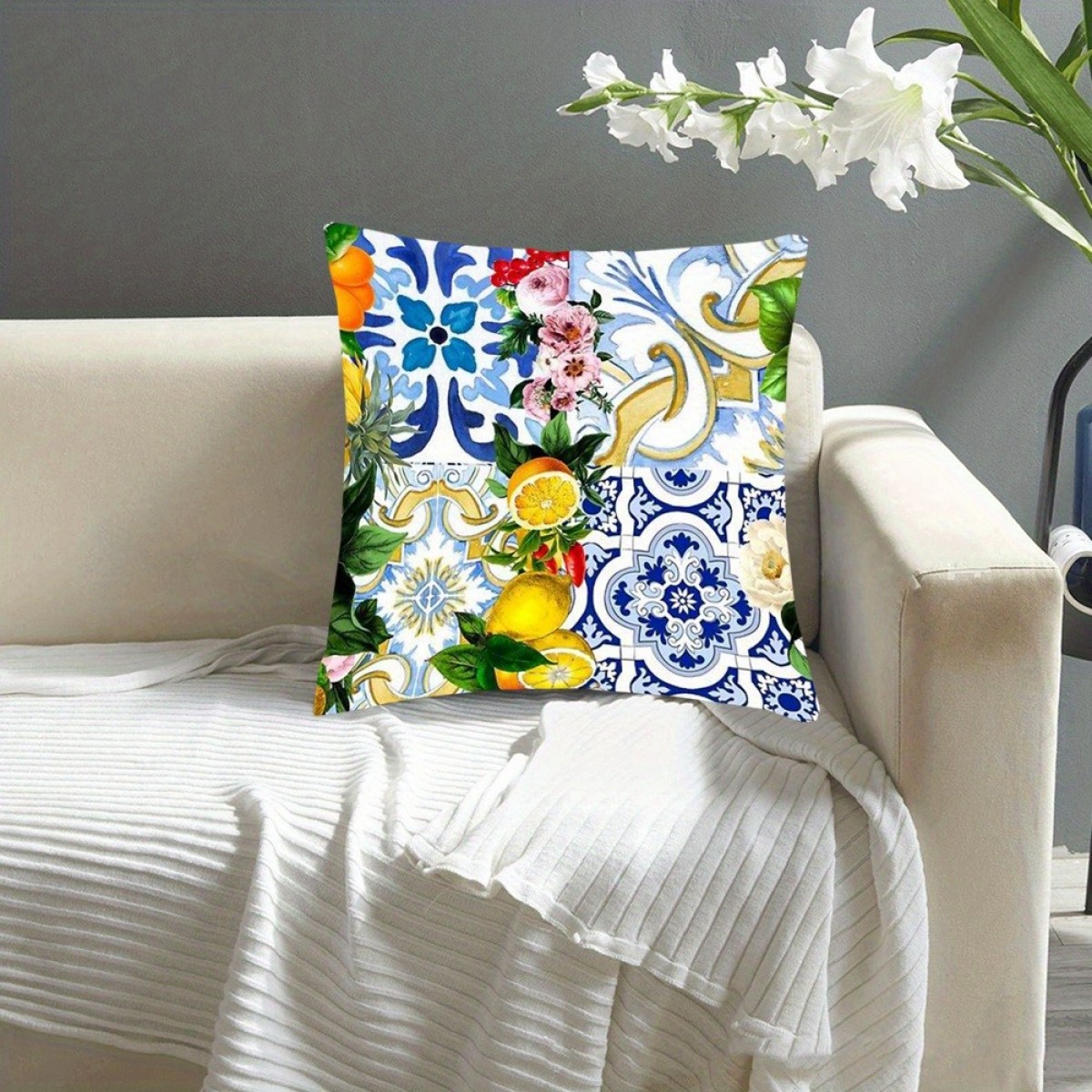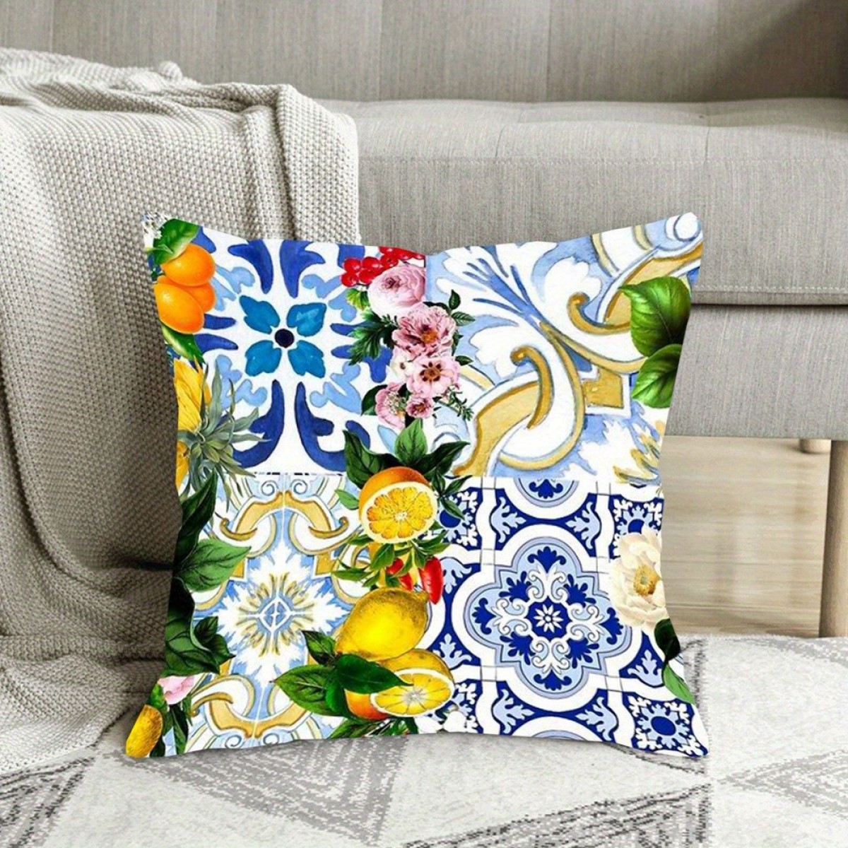 Outdoor Decor: The compact size and secure zip closure make this pillow an ideal accessory for your outdoor furniture. It can provide extra support and comfort during outdoor activities, while the Sicilian tile design adds a personal touch to your patio, garden, or poolside seating area. The machine-washable and durable construction ensure that it can withstand outdoor conditions, making it a practical choice for outdoor use.