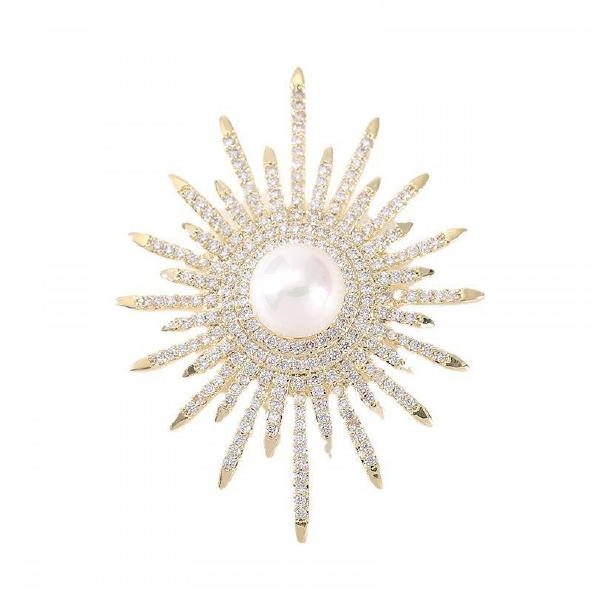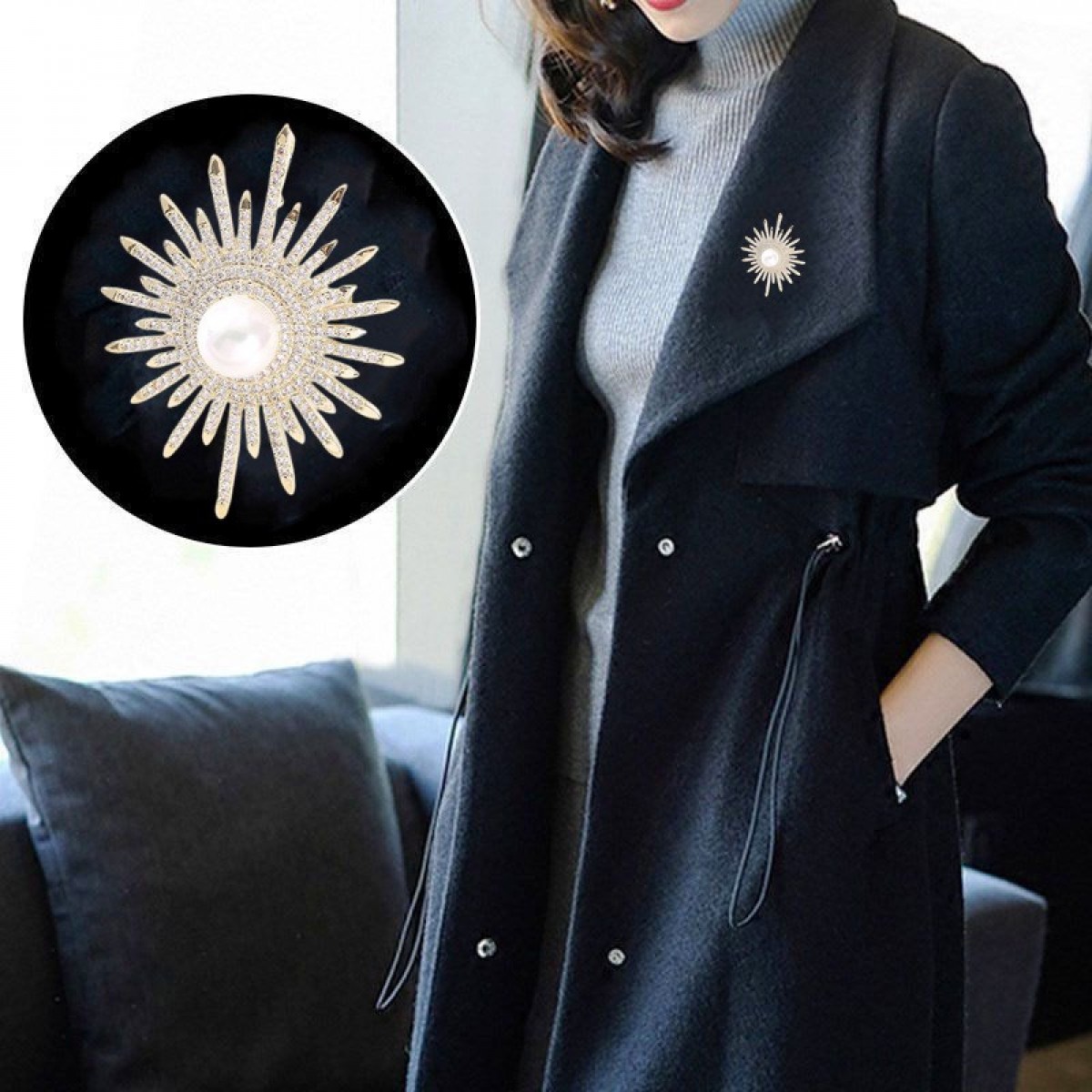 Pink Sea Pearl brooch female suit corsage sunflower pin full of diamond scarf buckle anti-glare buckle pin fixed clothes pin