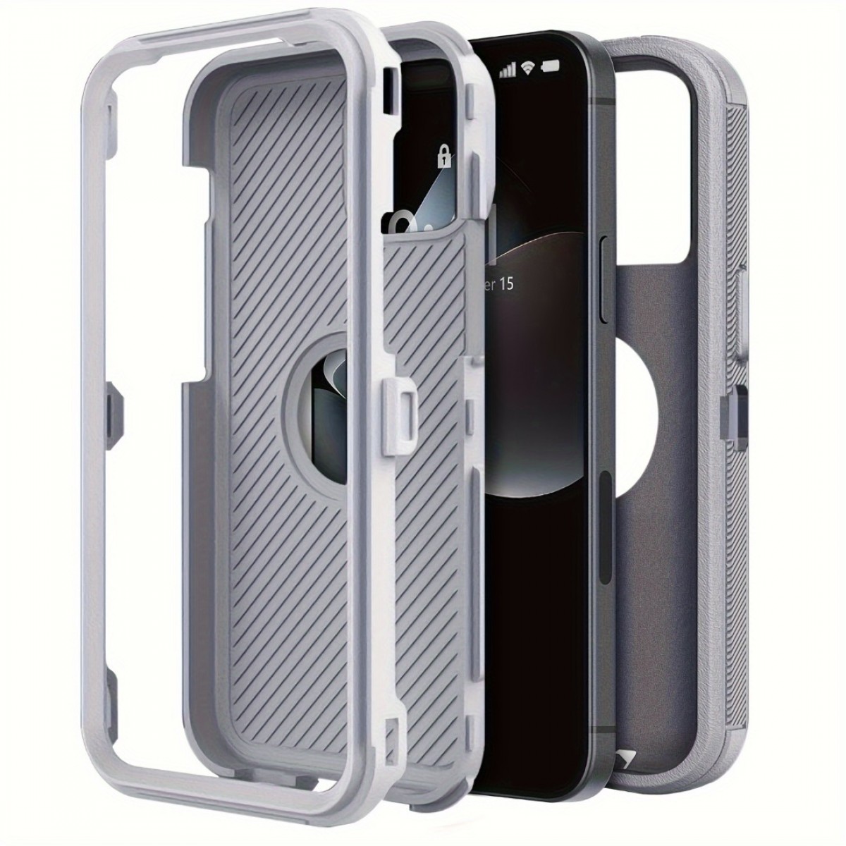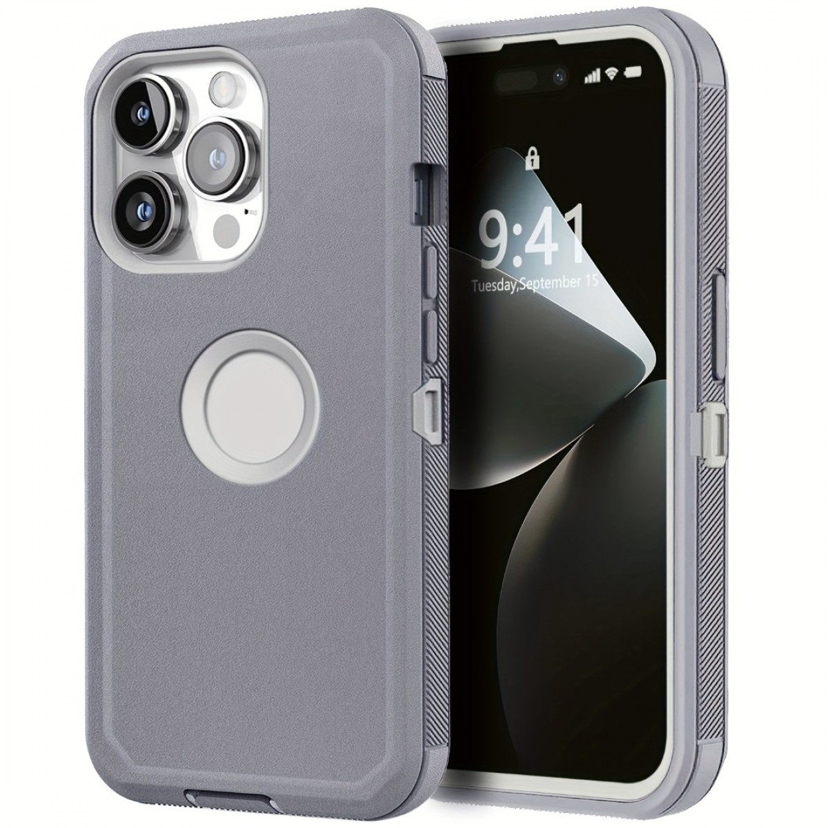 This heavy-duty, shockproof, rugged 3-layer protective case in gray is ideal for users who want to ensure their iPhone 15 Pro Max remains protected against various types of damage while enjoying a stylish and functional accessory. Whether for daily use or adventurous outings, this case will keep your smartphone safe and looking good.