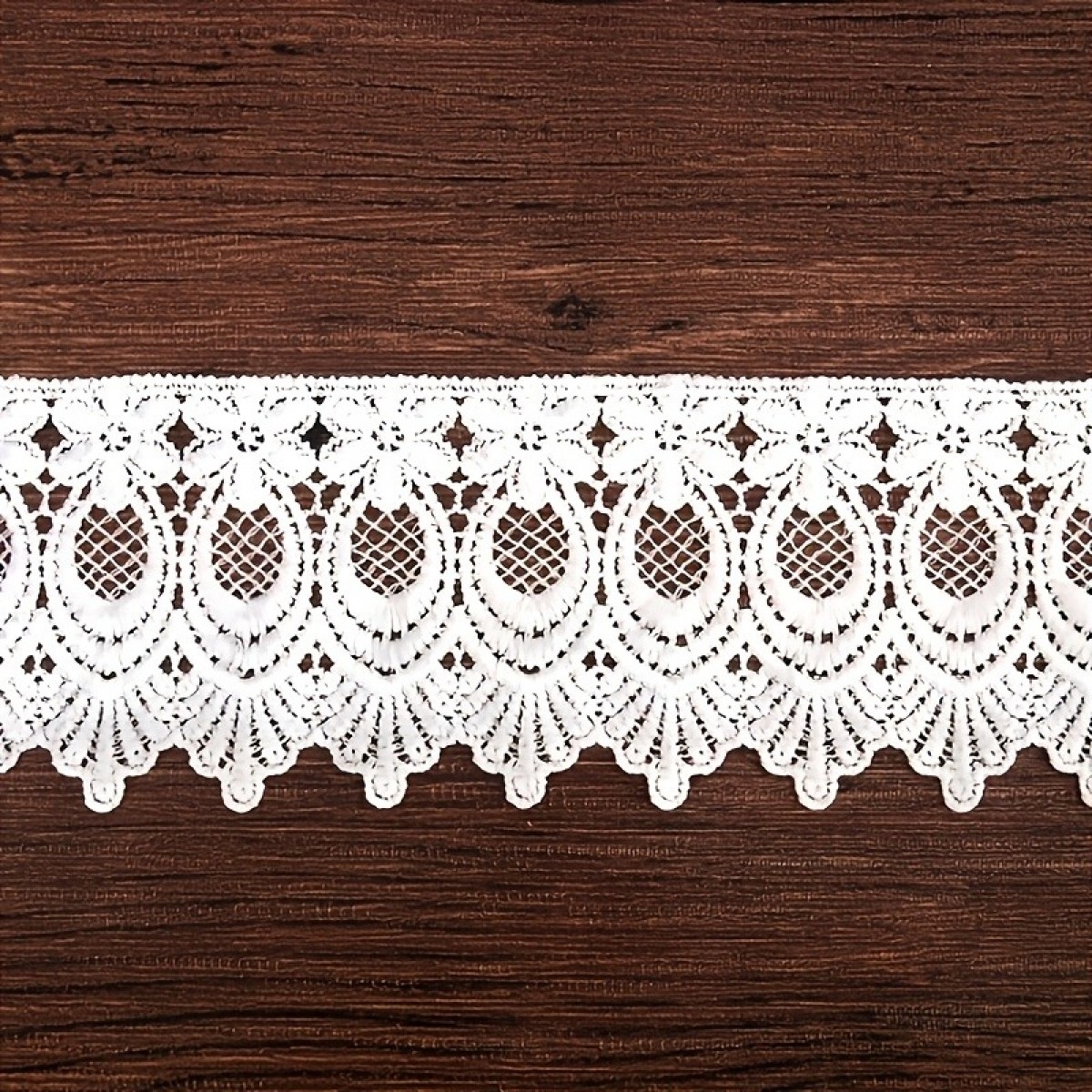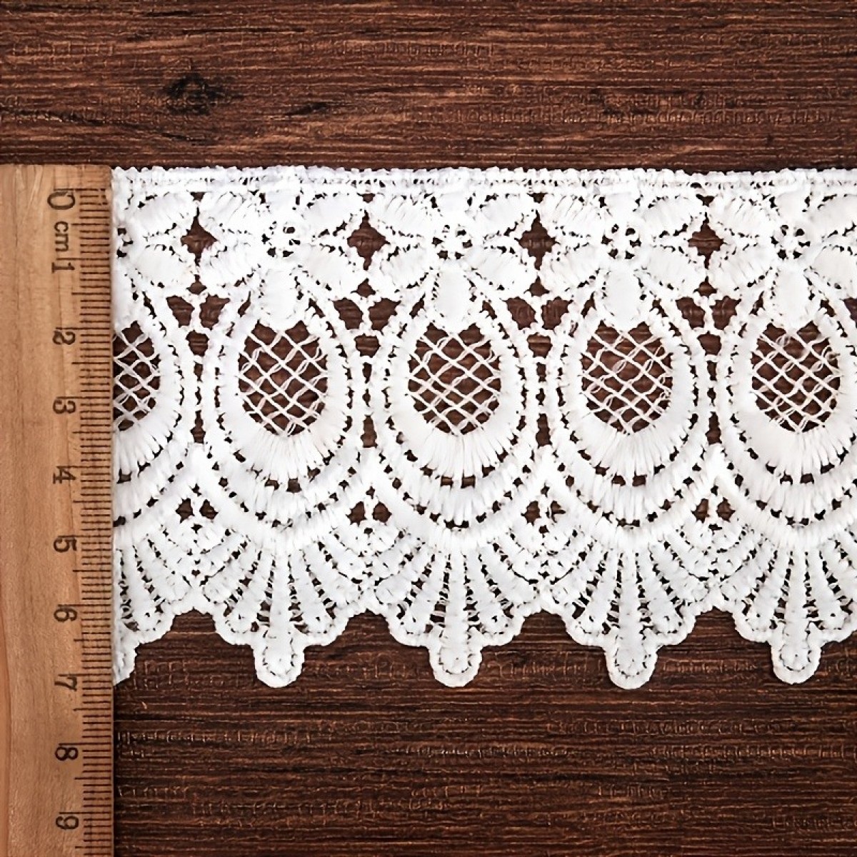 Superchoiece Lace 15 Yards White Lace Trim, 7.5cm Width, Water-Soluble Embroidered Hollow-Out Floral Edge for Cuffs, Clothing, Curtains - Fabric Material
