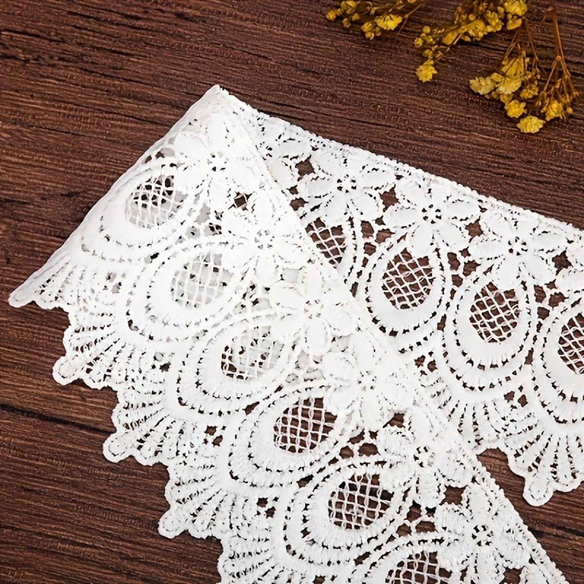 - Design Integration: Use the lace trim to enhance the edges of sleeves, hems, necklines, or as inserts in sheer fabrics for a layered look. It can also add a refined touch to home decor items such as curtains, pillows, or tablecloths.