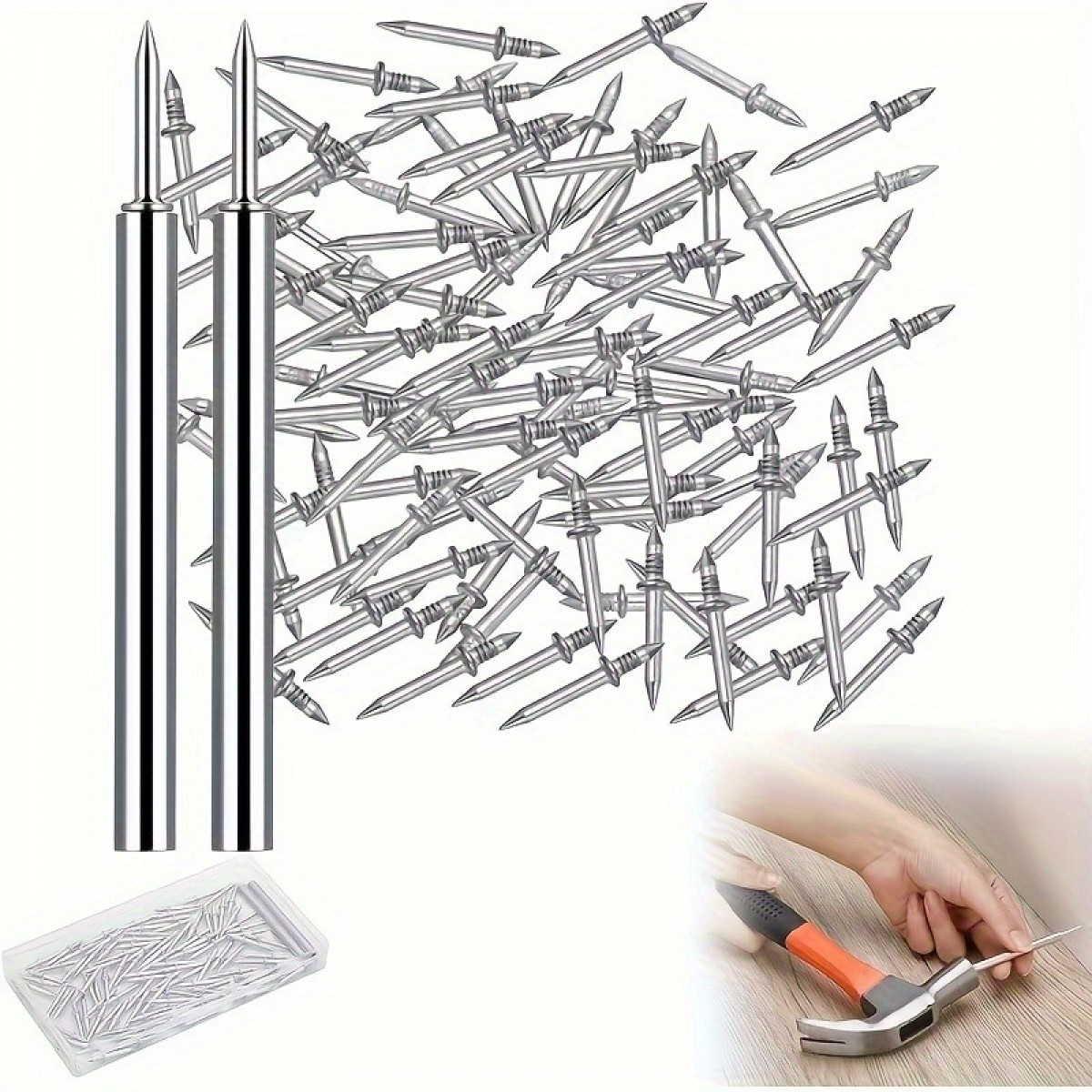 SUNDEER Metal nails 50pcs double head skirting seamless nails, double head nails, seamless nails, corner nails, skirting wall nails special hidden nails for wood veneer furniture sofa headboard safety screws with set tools