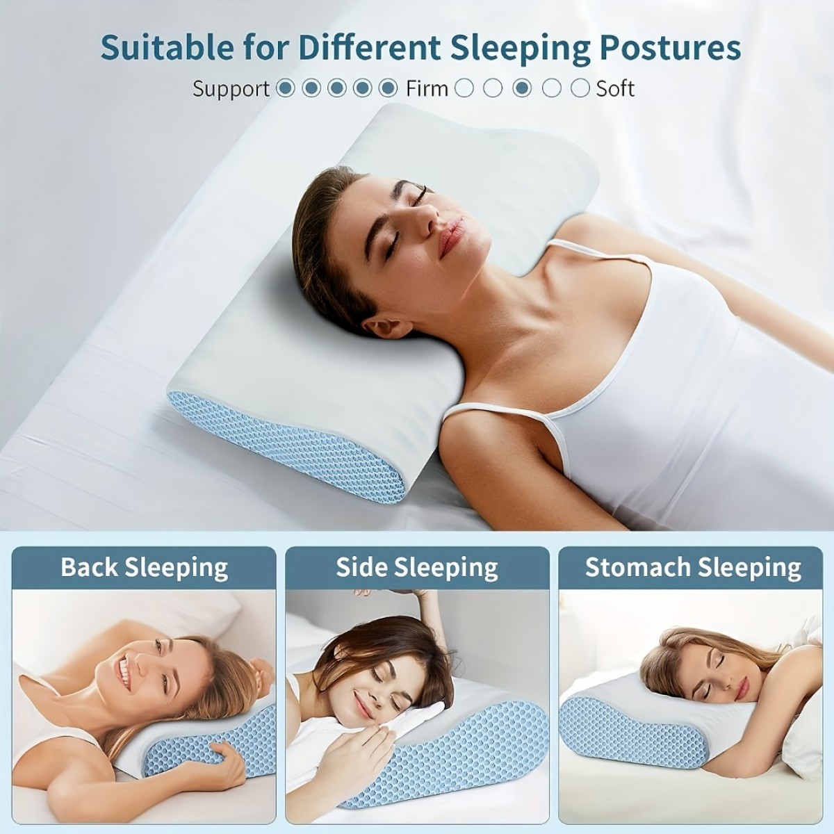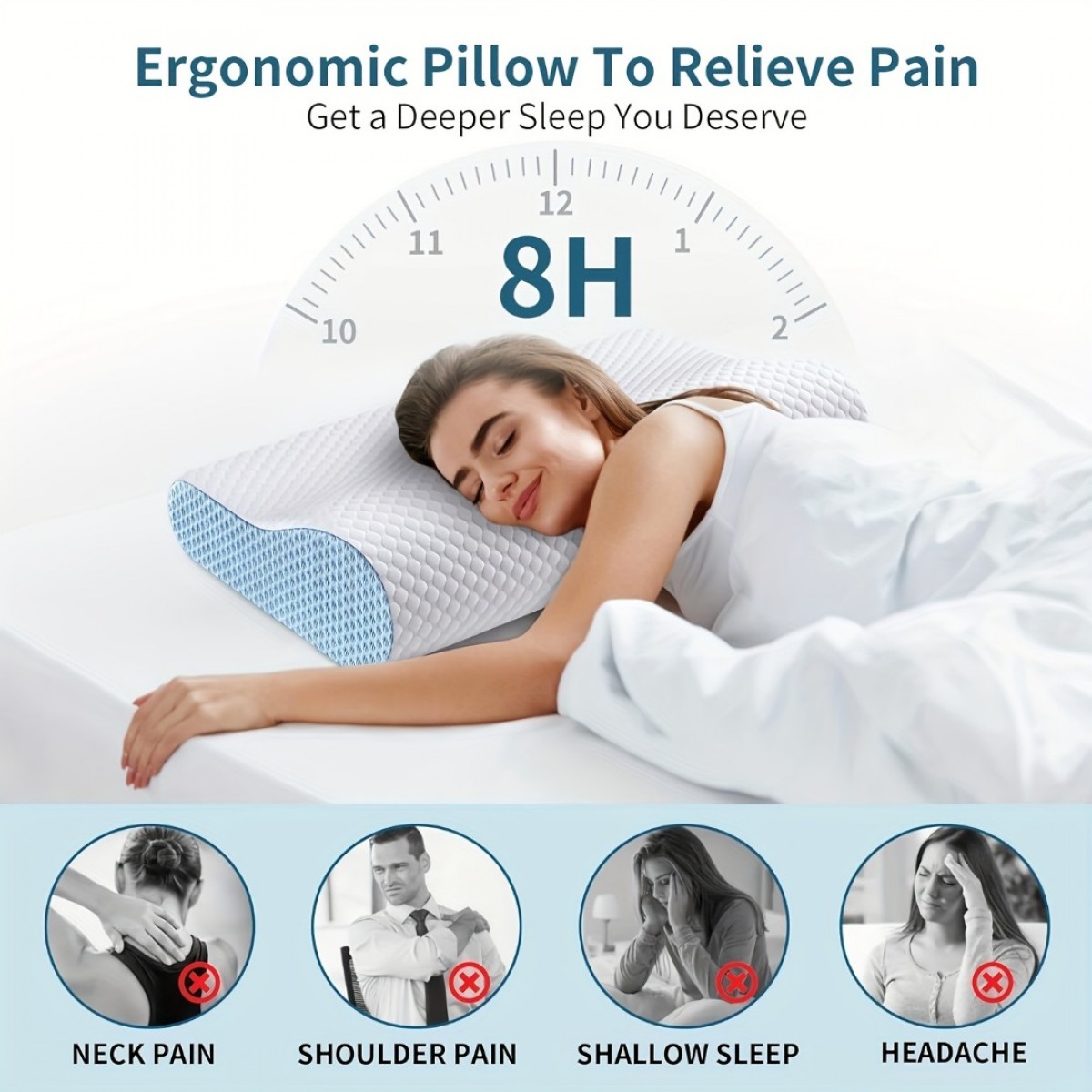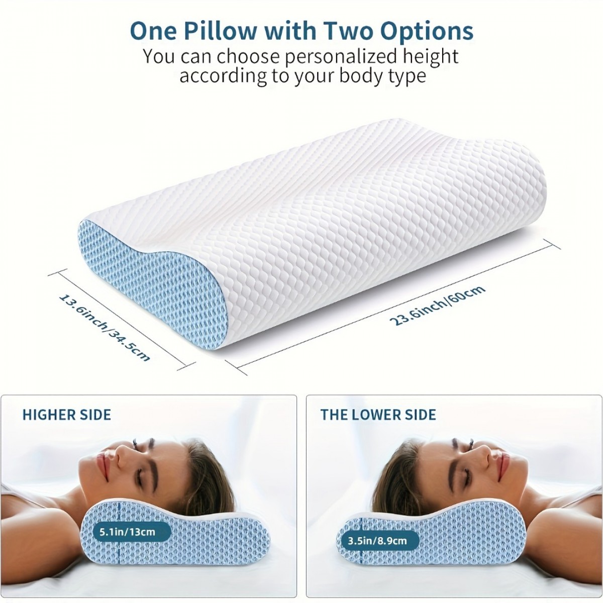 In summary, the Ergonomic Memory Foam Neck Pillow offers tailored support for a variety of sleeping positions, focusing on pain relief and improved sleep quality through its orthopedic contour design and memory foam construction. With its breathable pillowcase and dual-texture appearance, it combines functionality with style, making it a great choice for anyone looking to improve their sleep environment and reduce neck-related discomfort.