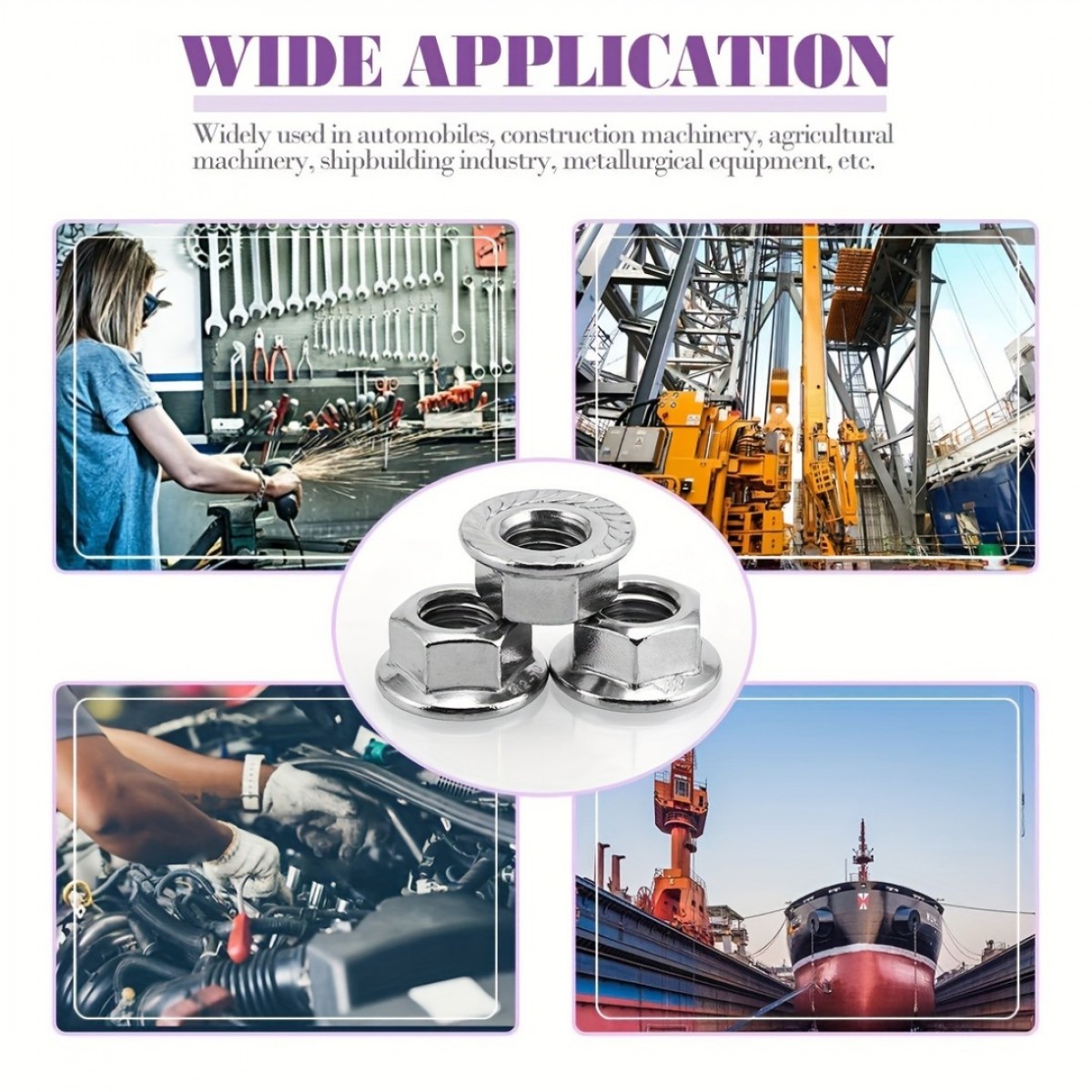 • Vibration Resistance: The primary benefit of serrated flange lock nuts is their ability to resist loosening under vibration or dynamic loads, thanks to the serrations that grip the surface they are tightened against.