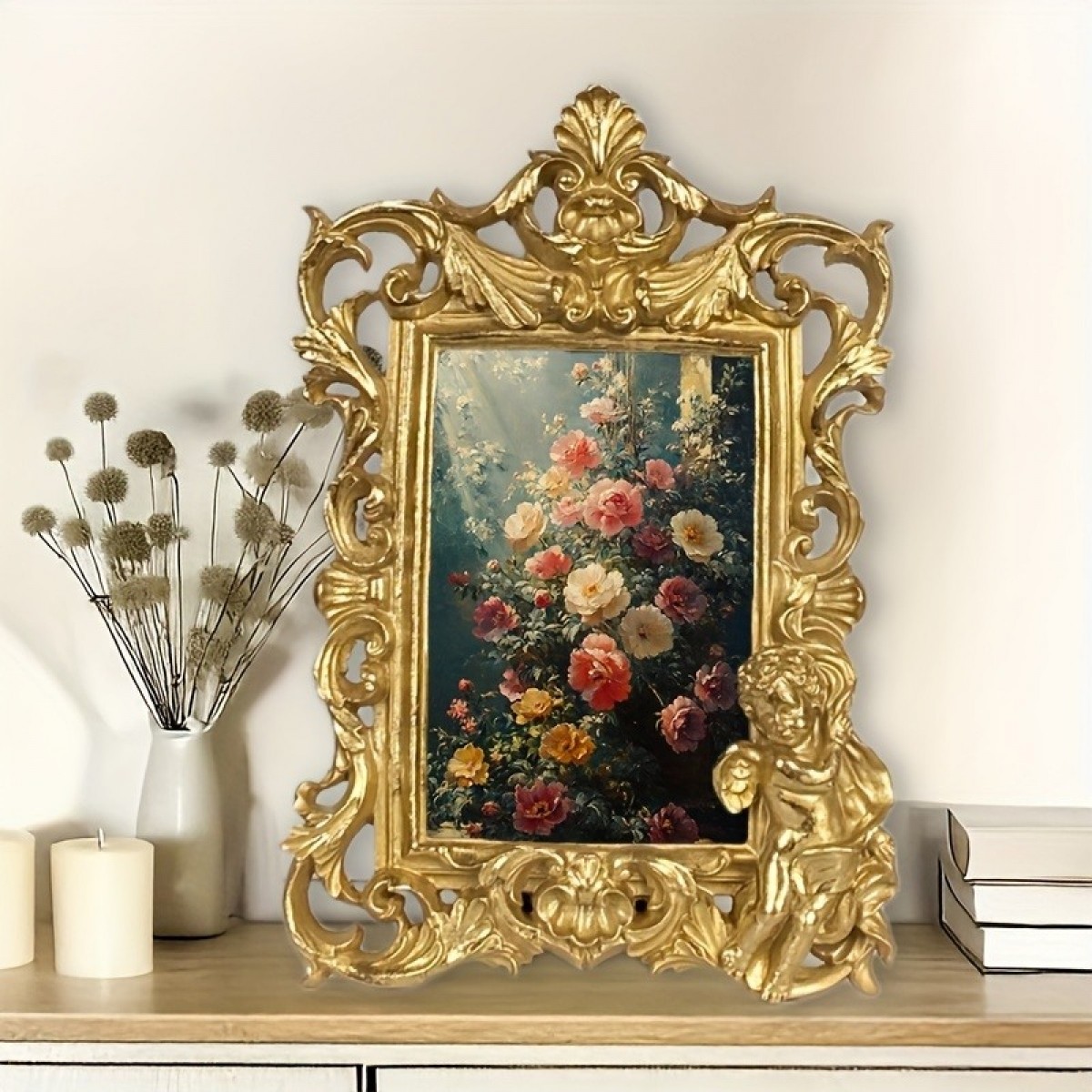 Timeless Beauty and Sophistication: The vintage resin design with angelic detailing adds a timeless and sophisticated touch to any room. The intricate and elegant craftsmanship makes it a standout piece that enhances the overall aesthetic of your home or wedding venue.