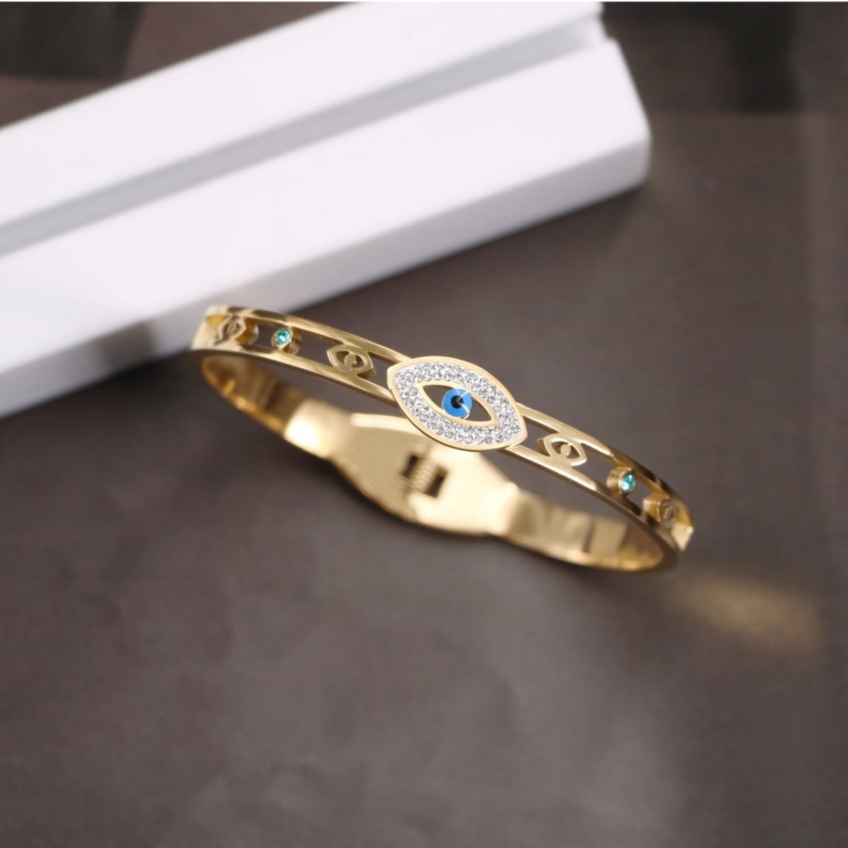 Hotcity Bracelets Plated Evil Eye Titanium Bracelet with Crystal Accents - Perfect for Everyday Wear or as a Gift
